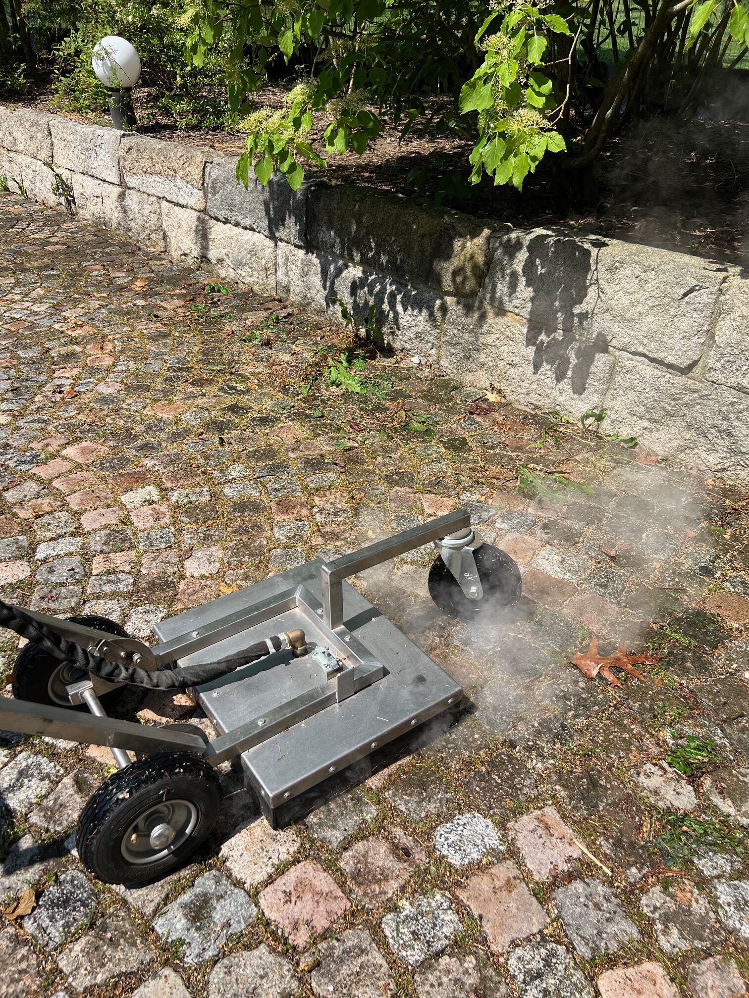 Unsere Leistungen umfassen die thermische Unkrautbekämpfung ohne Chemie, gründliche Oberflächenreinigung und zuverlässige Kehrarbeiten. Dabei arbeiten wir mit modernster Technik: Heißwasser- und Dampfverfahren zerstören Unkraut tief im Kern – pestizidfrei, sicher und umweltfreundlich. Ergänzend dazu sorgen wir für saubere Gehwege, Plätze und Zufahrten, die nicht nur gepflegt aussehen, sondern auch funktional bleiben.